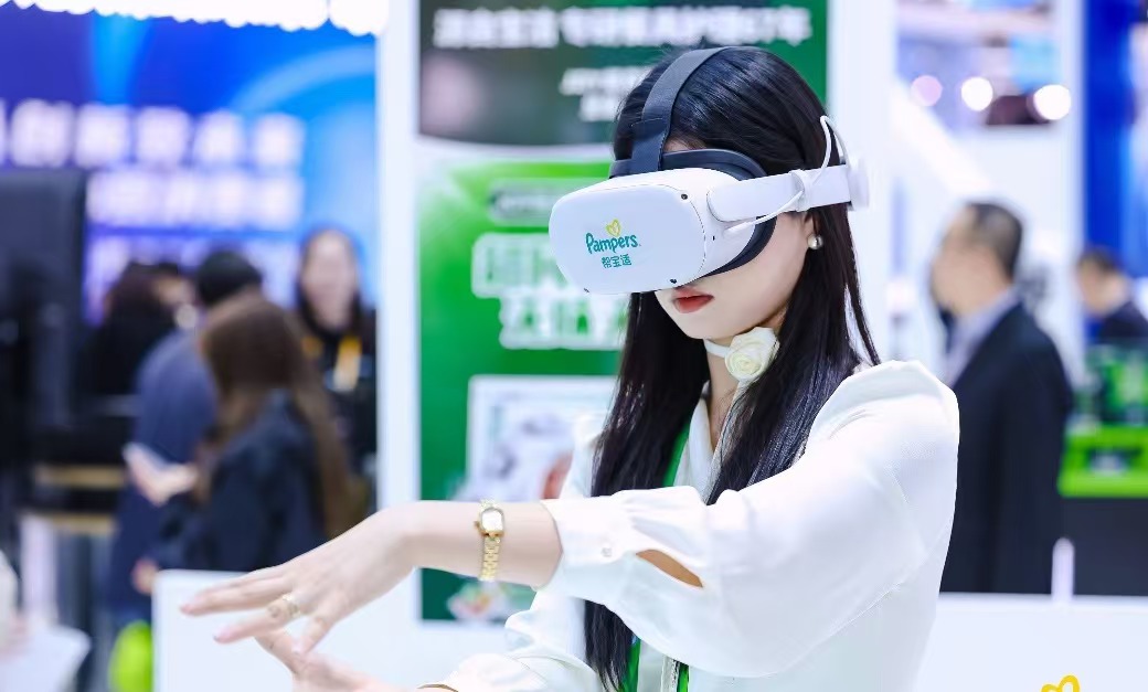 据悉,此次参会,帮宝适携帮宝适一级帮纸尿裤、帮宝适黑金帮纸尿裤、帮宝适日夜产品组合(帮宝适安睡拉拉裤、帮宝适散热拉拉裤)亮相。据现场工作人员介绍,全新“一级帮纸尿裤”添加了类胎脂护肤精华,模拟宝宝在母体内受到的天然保护,主动保护宝宝的肌肤屏障;“黑金帮纸尿裤”添加A1+级真蚕丝,专为新生儿。同时,展区特别展出纸尿裤元宇宙VR黑科技,通过高科技感、趣味性、沉浸式的互动形式让纸尿裤核心科技可感可知。